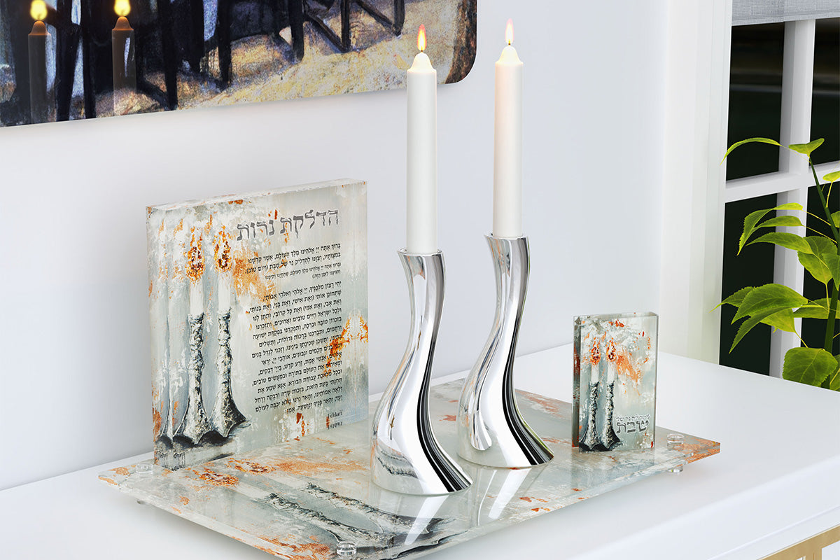 Des lignes épurées, des accents dorés et un design durable en font une collection incontournable pour les jeunes mariés, les kallahs et les donneurs de cadeaux élégants.