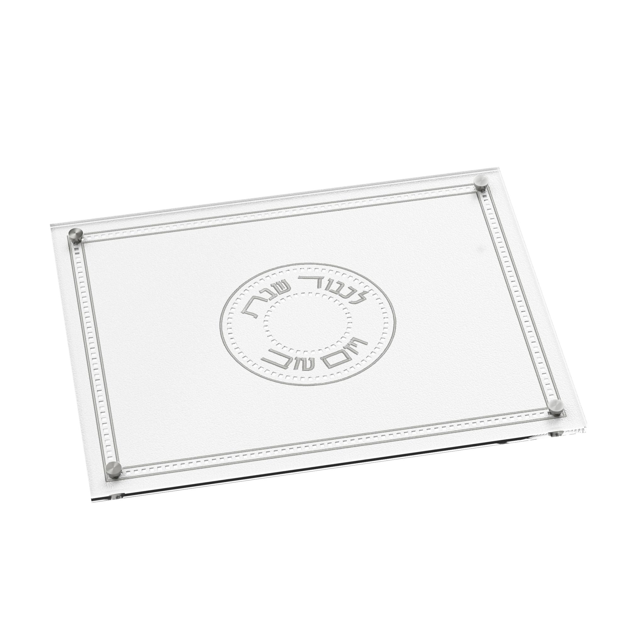 Offrez-vous le luxe avec la planche à Challah Leatherite Gilded Radiance , magnifiquement confectionnée avec un motif en cuir brodé et recouverte de Lucite et de verre trempé. Disponible en or, argent, or et argent massif, cette planche incarne le luxe et l'élégance. Sublimez votre table de Chabbat et de Yom Tov avec cette magnifique œuvre d'art fonctionnelle.