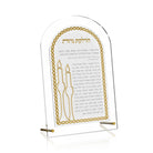 Elevate your Shabbos and Yom Tov Hadlakos Neiros with the stunning Woven Leatherite Hadlakos Neiros Card. Featuring premium textured leather in silver or gold with exquisitely embroidered details all enclosed between crystal clear lucite for lasting beauty. A sophisticated, durable keepsake that brings elegance to your most meaningful moments.