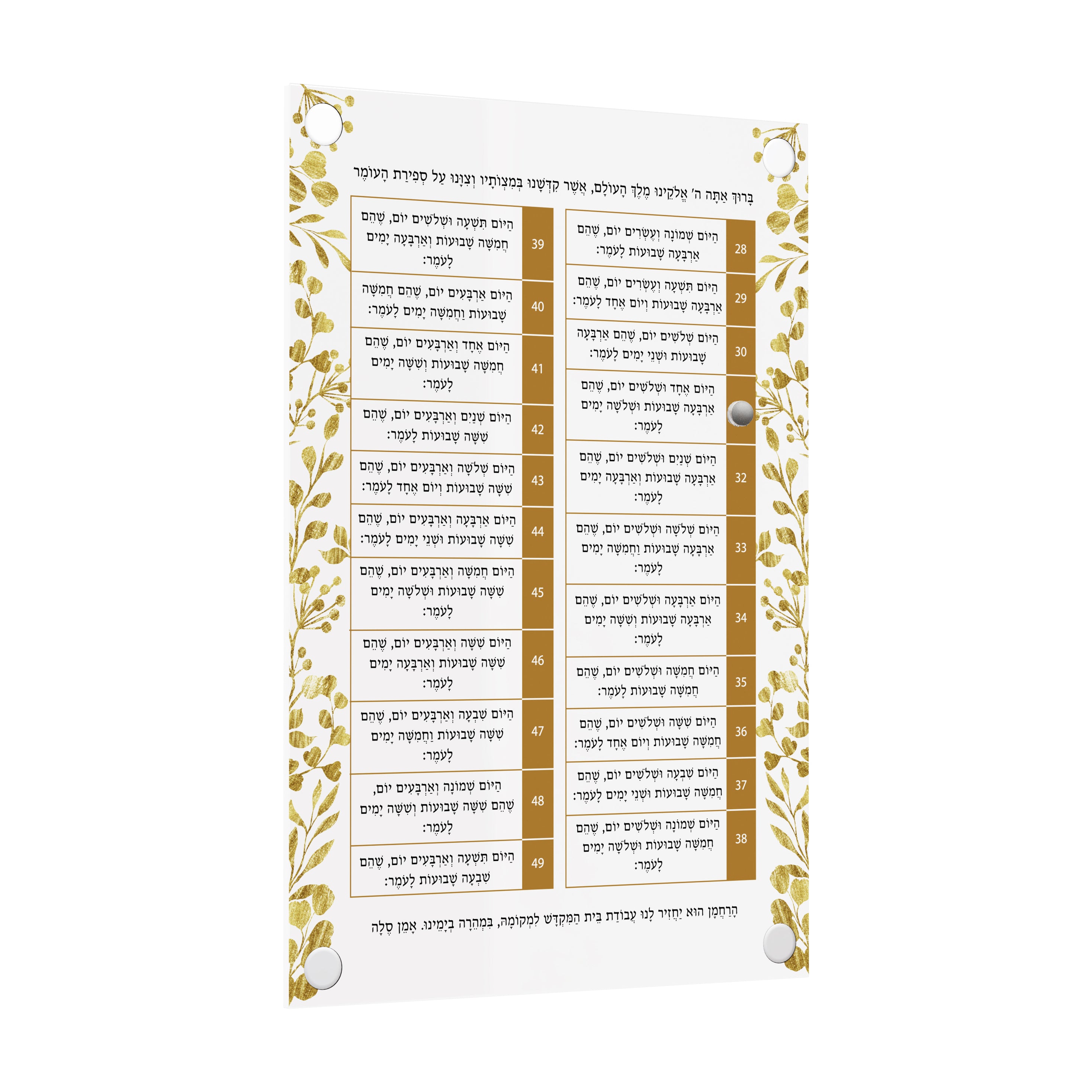 Feuille d'or Sefiras Haomer, dessus de table