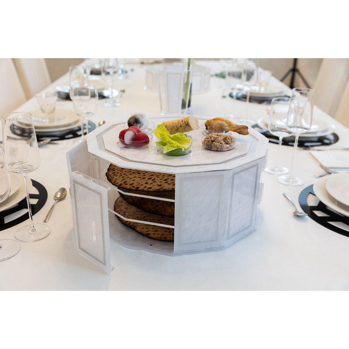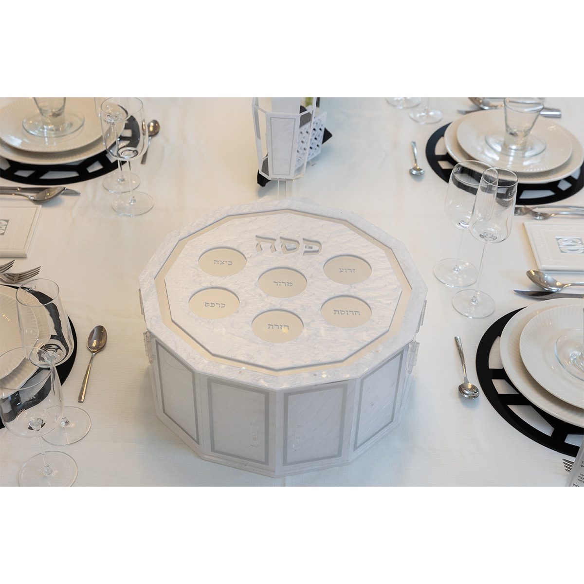 Gardez la table du Seder organisée avec cette superbe Kaarah en perles blanches et en argent.