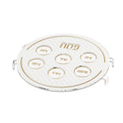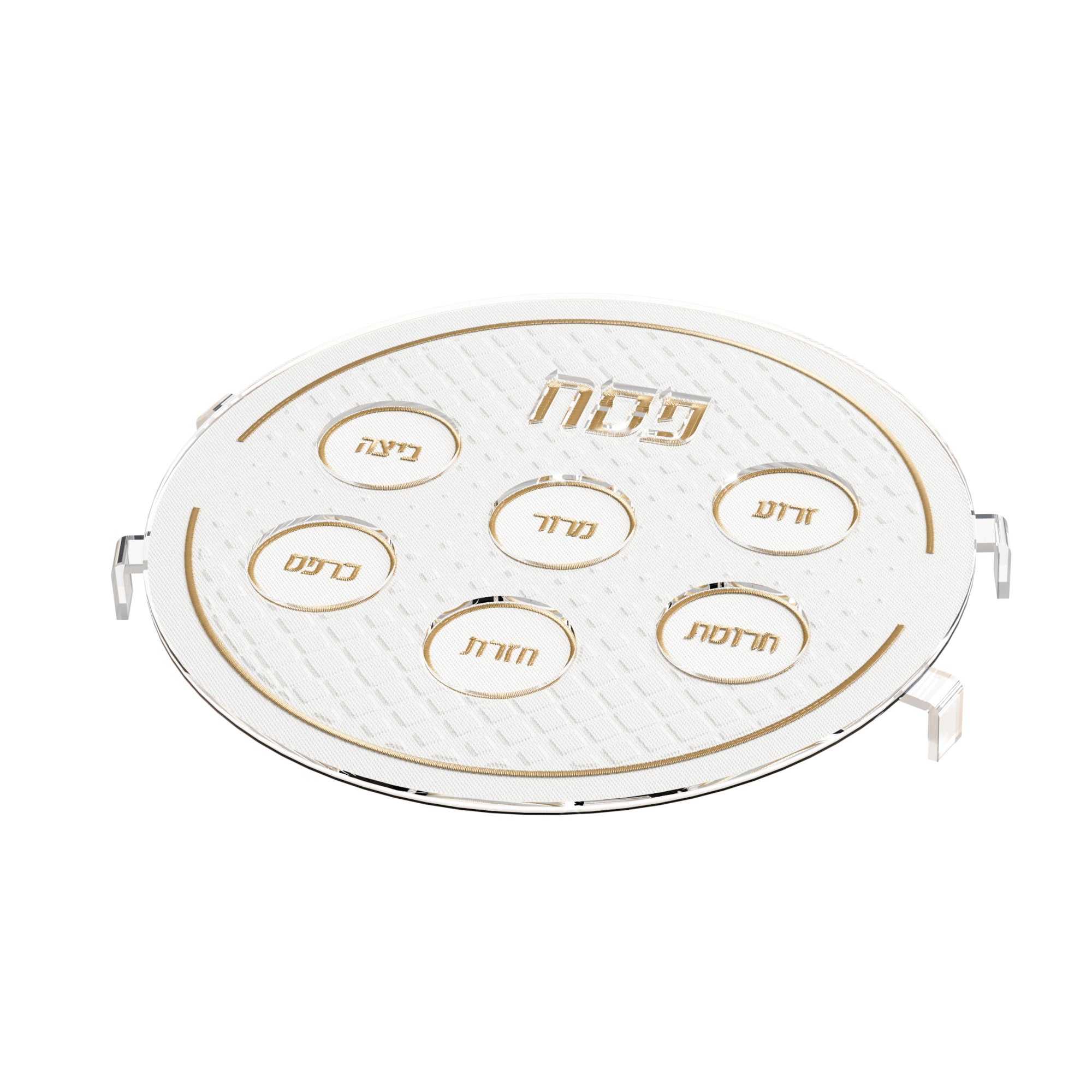 Offrez-vous le luxe avec l' assiette de Seder Leatherite Diamond . Fabriquée en Lucite et cuir, avec un motif diamant impeccable et des pieds surélevés en acrylique, cette assiette est bien plus qu'un simple objet fonctionnel pour votre repas de Pessah. Le cuir est orné de titres, de bordures et de textes brodés, le tout enchâssé dans de la Lucite pour une finition éclatante. Choisissez entre les finitions dorées ou argentées selon vos goûts. Sublimez votre table de Seder avec cette pièce exclusive et sophistiquée.