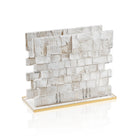 Bring the timeless beauty of the Kosel into your home with the Serene Kosel Napkin Holder. Featuring a stunning textured lucite depiction of the Western Wall with tiny figures davening at its base, all set on an elegant gold base, this remarkable piece is as meaningful as it is functional. A truly unique conversation piece for any table.
