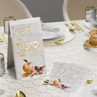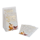 Ce coffret raffiné Simanim Pomme Grenade, dans une pochette en cuir, comprend quatre cartes en cuir magnifiquement confectionnées, représentant les Simanim Yehi Ratzons traditionnels, élégamment rangées dans une pochette en cuir au titre gravé. La pochette et les cartes sont ornées de magnifiques motifs de pomme et de grenade, symbole de douceur et d'abondance pour la nouvelle année. Un coffret élégant et plein de sens pour sublimer votre décoration de table de Roch Hachana.