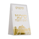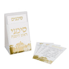 Ce coffret raffiné Simanim Pomme Grenade, dans une pochette en cuir, comprend quatre cartes en cuir magnifiquement confectionnées, représentant les Simanim Yehi Ratzons traditionnels, élégamment rangées dans une pochette en cuir au titre gravé. La pochette et les cartes sont ornées de magnifiques motifs de pomme et de grenade, symbole de douceur et d'abondance pour la nouvelle année. Un coffret élégant et plein de sens pour sublimer votre décoration de table de Roch Hachana.