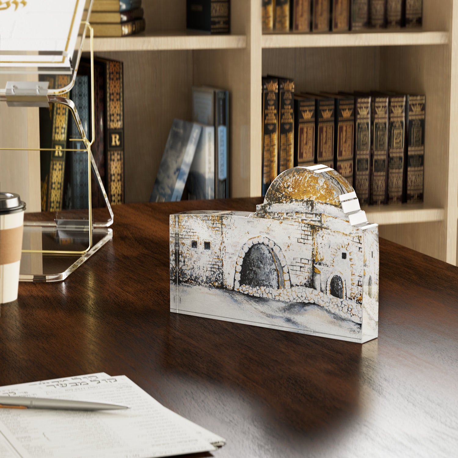 Libérez l'attrait du bloc Kever Rochel. Fabriqué en acrylique de première qualité. Ce chef-d'œuvre de table exquis vous transportera directement à Kever Rochel, tandis que son design raffiné rehausse n'importe quel espace. Améliorez votre décor avec cette œuvre d'art exclusive et de bon goût.